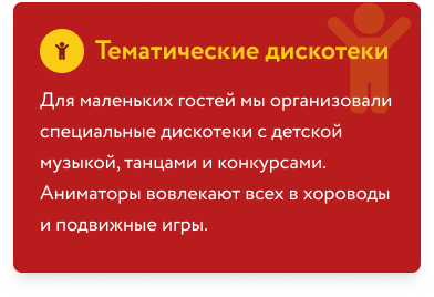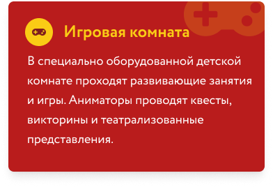 Родители могут заказать индивидуальные занятия с аниматорами, мастер-классы или праздничный торт. В сувенирном магазине продаётся фирменная продукция сети.